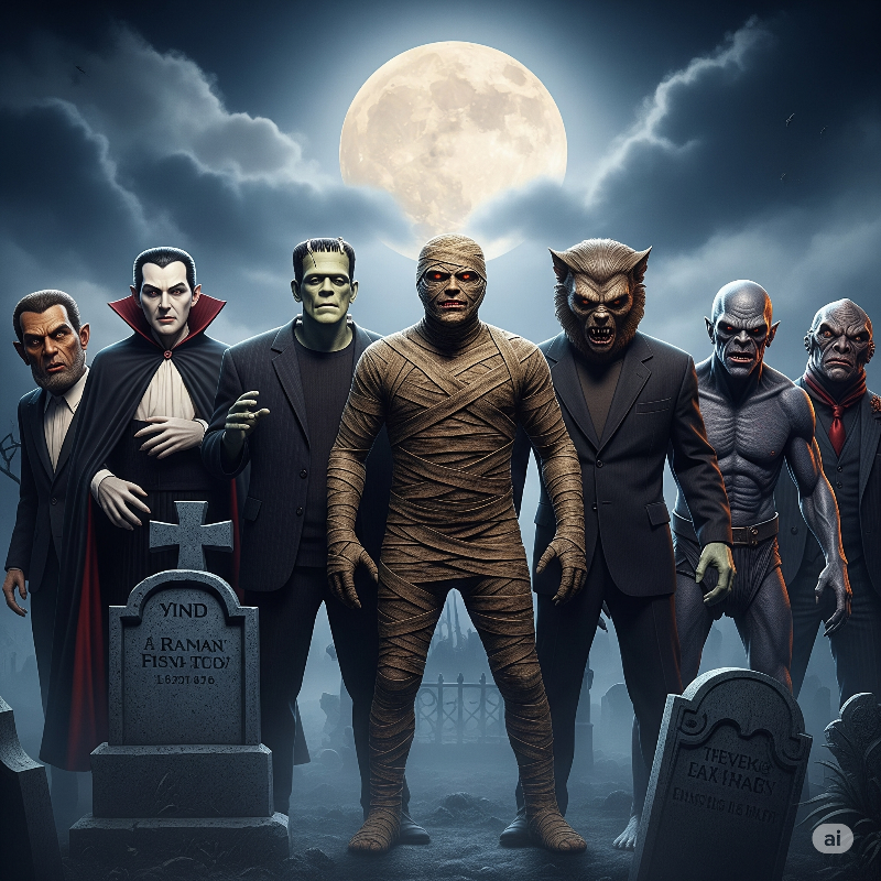 유니버설 몬스터들을 활용하면서도 판권 문제를 피해 창의적으로 디자인된 몬스터들은 영화의 백미입니다. 당시에는 실물 분장과 아트워크 중심의 연출이었는데, 이 점이 오히려 지금 보면 더 매력적으로 느껴집니다.