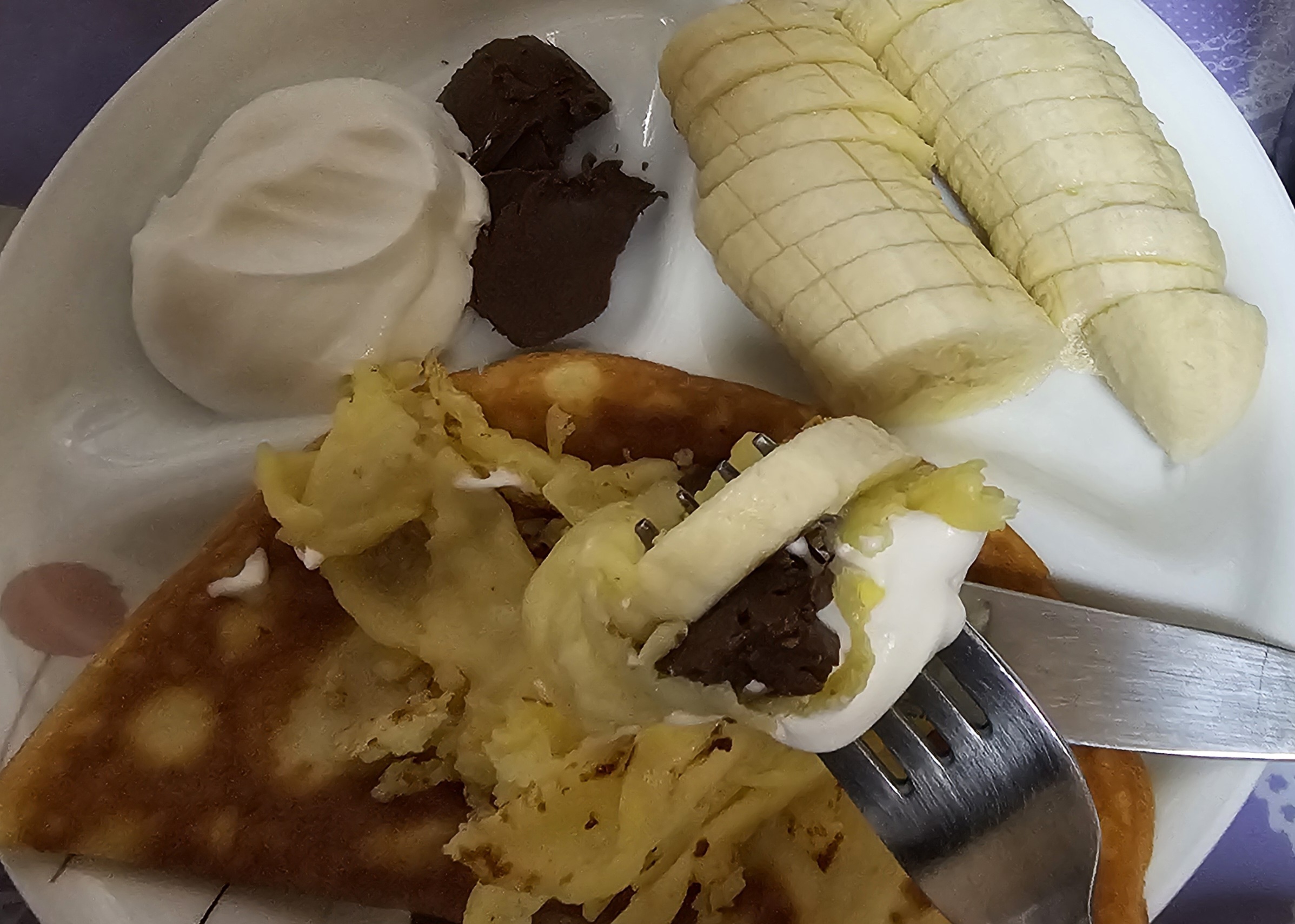 - 익일 새벽 1시 47분 : 크레페 2장, 바나나, 누텔라, 생크림, 우유